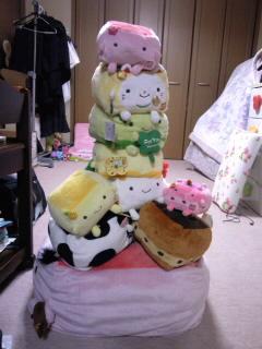 で。この間暇だったので、置場もなく棚から転がり出ていた子たちを積み木のように積んでいってお豆腐タワーなるものをつくってみましたw